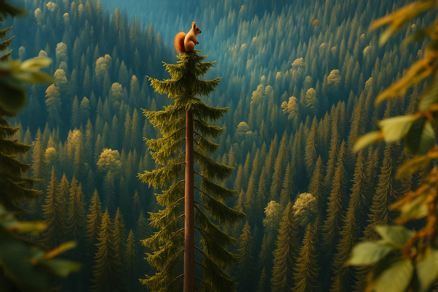 토토는 용기를 내어 숲속에서 가장 높은 나무로 달려갔습니다. 나무 기둥을 타고, 가지를 뛰어넘으며, 마침내 꼭대기에 올랐습니다. 토토는 눈을 크게 뜨고 사방을 살펴보았습니다. 하지만 하늘에는 맑은 구름만 가득할 뿐, 독수리는 보이지 않았습니다.