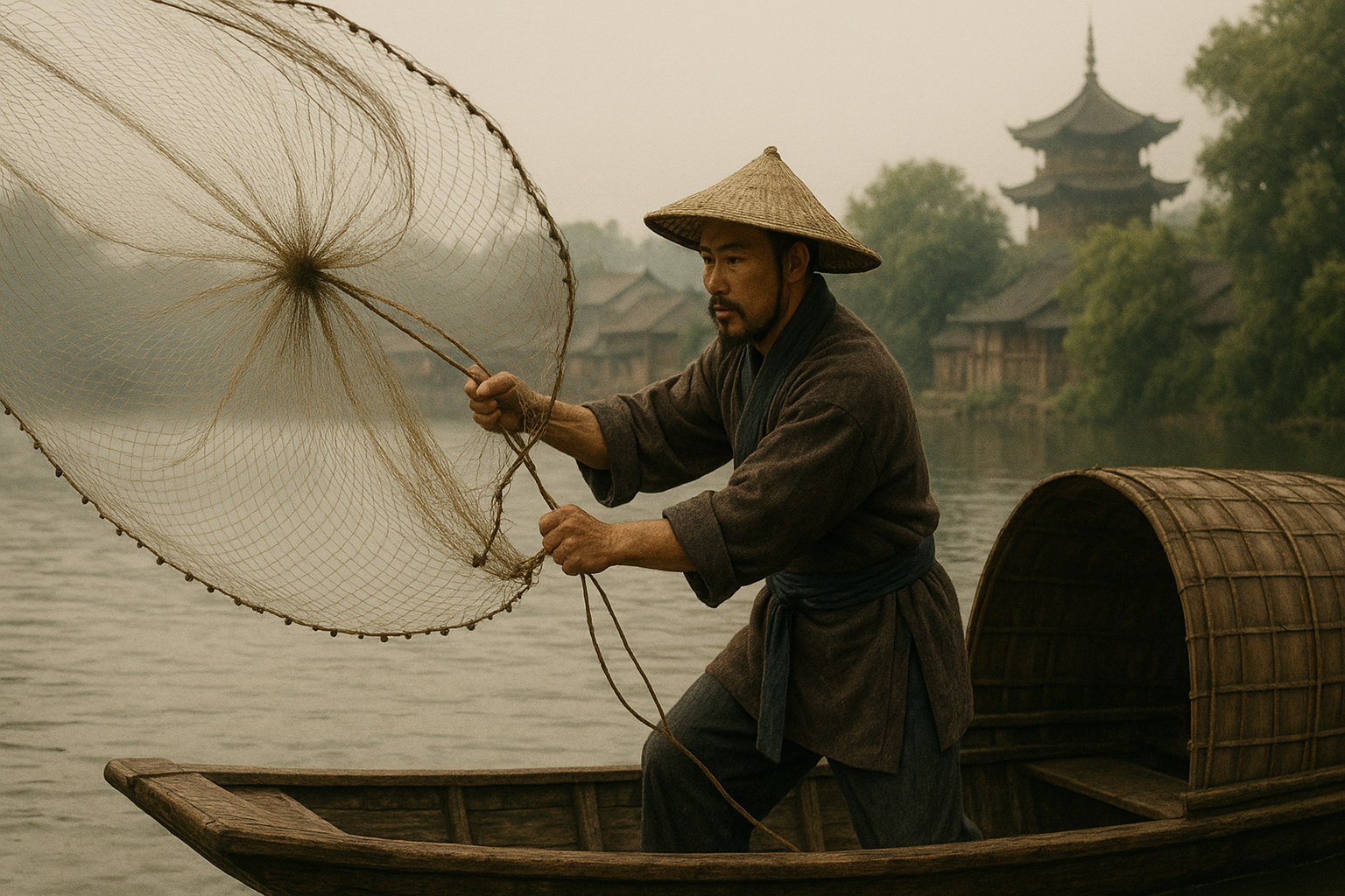 제7계 무중생유(無中生有)는 “그물 속에서 물고기를 잡는다”는 의미로, 적이 스스로 빠져나갈 수 없는 환경을 조용히 만들어 두고 그 안으로 자연스럽게 끌어들이는 전략입니다. 처음에는 모든 상황이 평소와 다르지 않게 보이기 때문에 상대는 전혀 경계하지 않고 그대로 움직입니다.